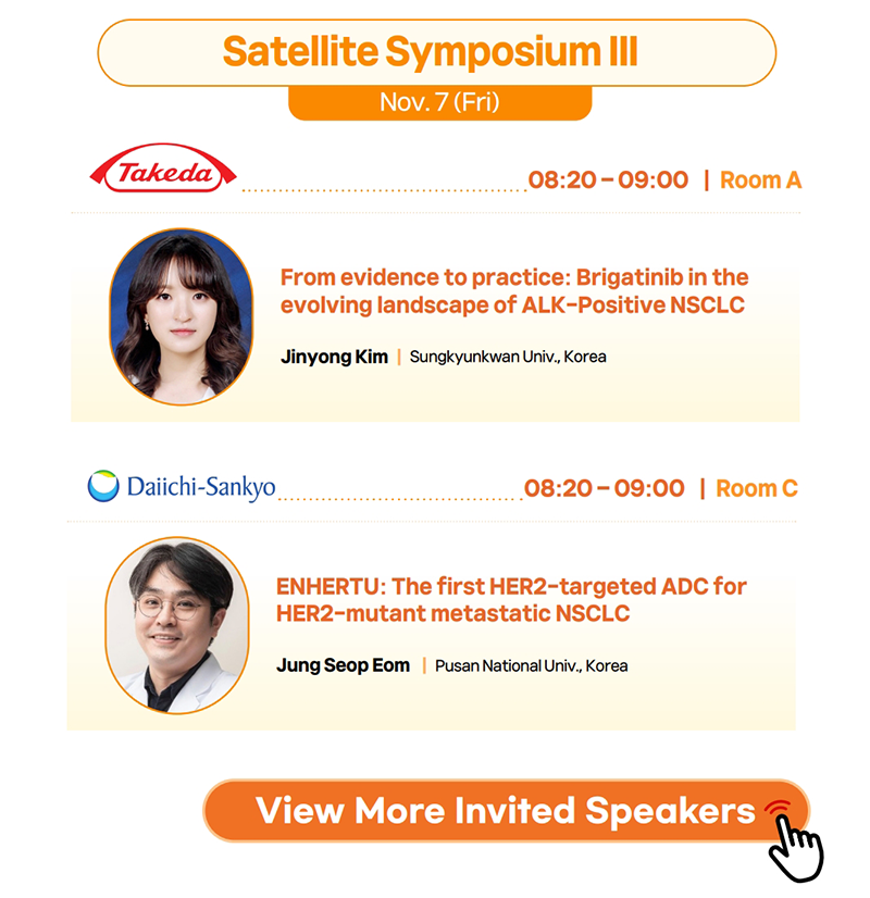 | A-0025 | 11:05-11:15 | Predictive Value of Inflammatory Biomarkers in EGFR-Mutant NSCLC Treated with Lazertinib: An Interim Analysis of a Prospective Real-World Study (ORIENT) | Seung Hyeun Lee | Kyung Hee University Medical Center | Korea |